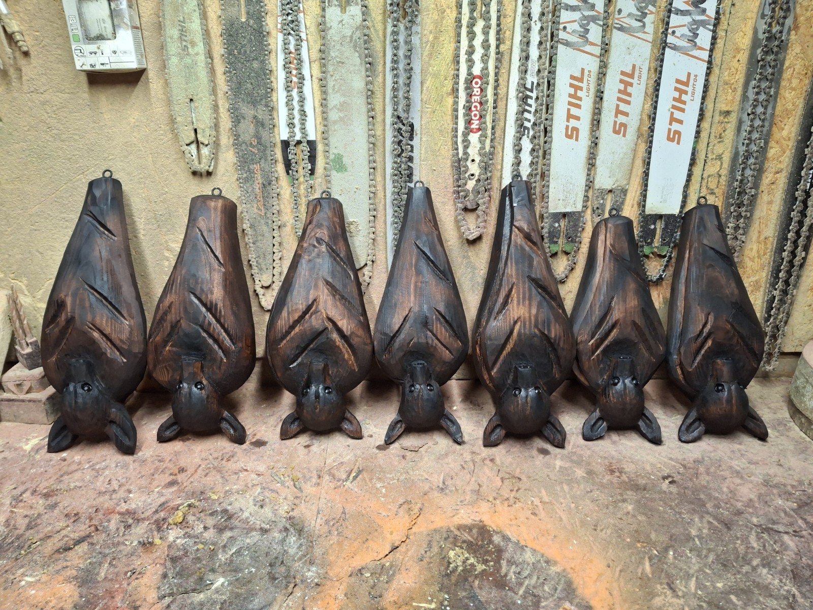 Chainsaw Carved Hanging Bat Wood Carving Creepy Rustic Home Decor Art Unique