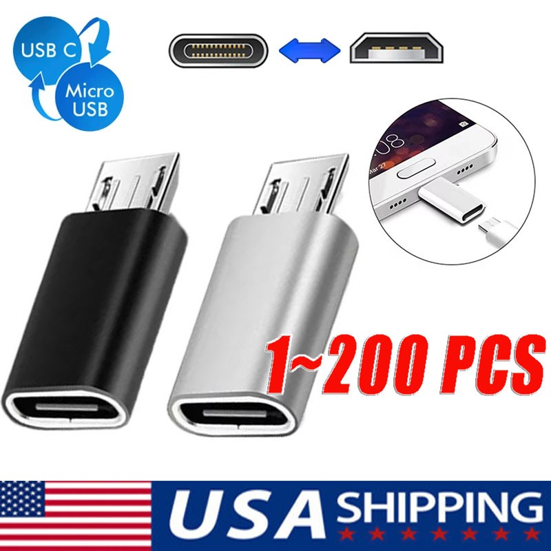 200x Type C Female to Micro USB Male Port Converter Charge Data Sync Adapter Lot