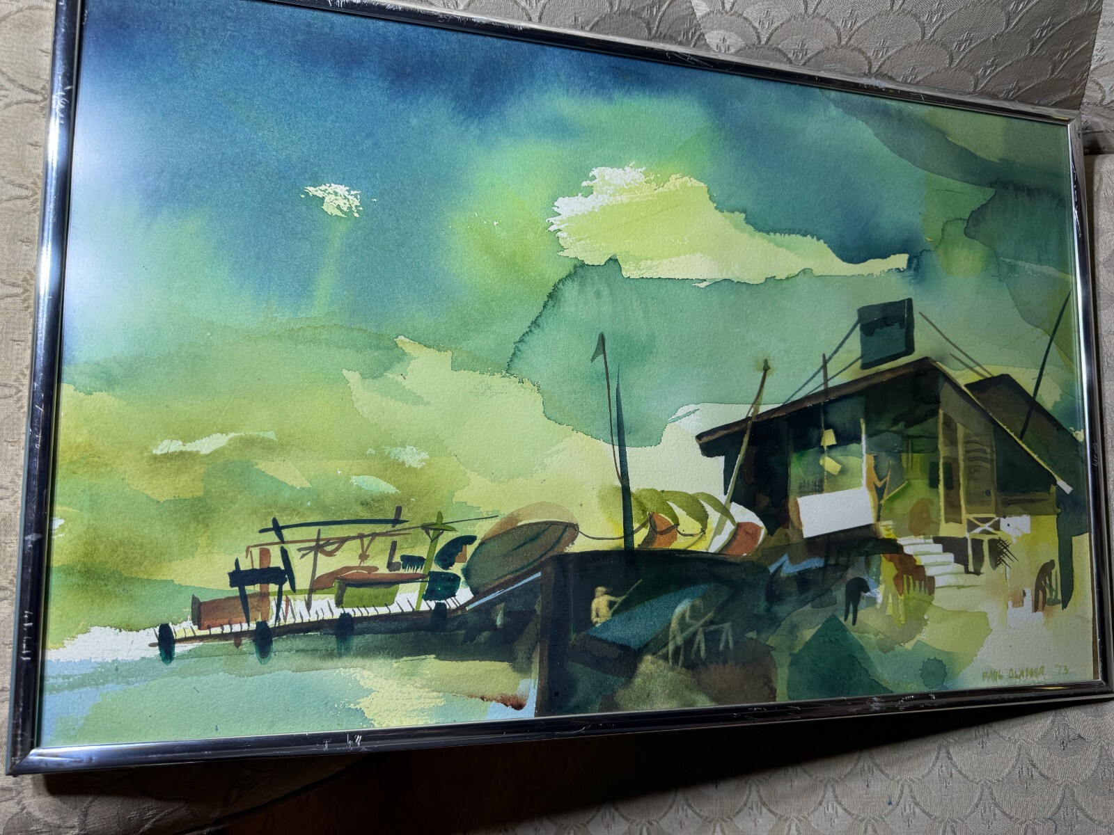 Paul Glasser 1973 "Coastal Landscape Scene" Watercolor Painting - Signed/Framed